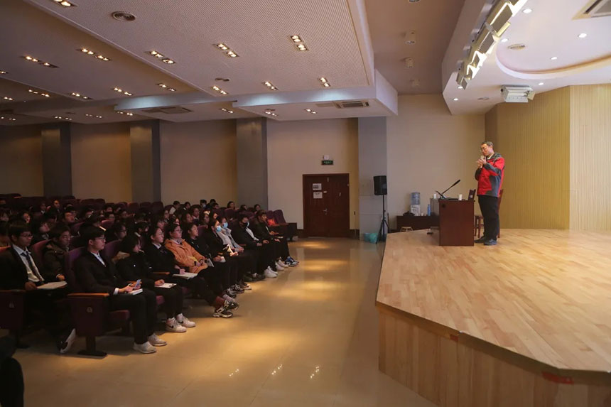 提問環節,學生充分發揮自己的才智,提出了許多有價值且有前景性的問題,尹主任一一耐心解答,讓大家對中國的未來農業發展有了一個全新的認識。最后尹主任結合自己的體會送給大家兩點人生啟示: