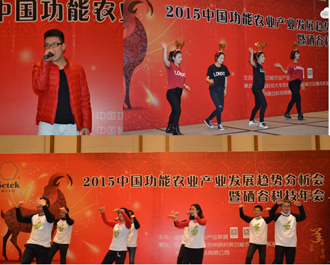 年會中各部門都帶來了精彩的表演,財務部的馮亞男帶來了男聲獨唱《愛不愛我》,高亢嘹亮的歌喉代表著硒谷人對硒谷的希望與熱愛;技術部的《富硒小蘋果》跳出了硒谷人的熱情與活潑;硒泰克的《恭喜發財》代表了硒谷人對來賓們的祝福;學生代表湯杰夫的《海闊天空》讓我們感嘆硒谷后繼有人;主持人王健與焦文寧的情歌對唱《你是我心內的一首歌》讓我們驚嘆硒谷人的多才多藝。行政人事部自編自演的《老大去哪兒》代表著硒谷人對“老大們”的情真意切。最后功能農業部的一首《明天會更好》讓我們硒谷人一同暢想我們美好的明天。