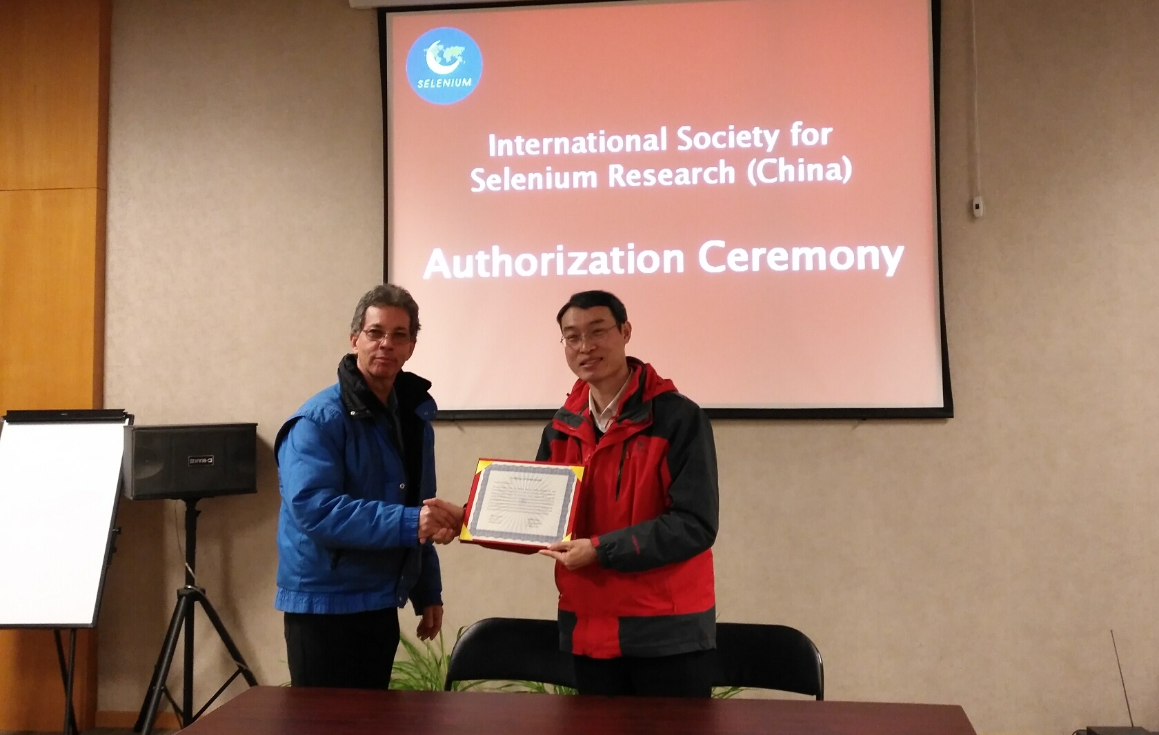2017年1月11日,國際硒研究學會(ISSR)主席、美國農業部Gary Bañuelos教授正式批準成立國際硒研究學會中國分會,授權位于中國科技大學的學會秘書處全權負責國際硒研究學會中國分會(International Society for Selenium Research/China)的籌建工作。在國際硒研究學會中國分會授權儀式中,學會主席Gary教授為學會秘書長尹雪斌博士頒發授權書。