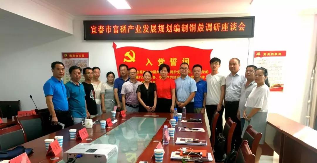為充分開發利用我市富硒資源優勢,大力發展富硒產業,市委、市政府委托蘇州硒谷科技有限公司編制《宜春市富硒產業發展規劃(2018-2022)》, 8月22日下午赴我縣開展富硒產業發展規劃編制調研工作。